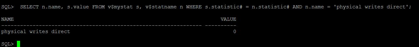 - Insert records in the table with conventional insert statement and validate HWM and Direct Path Write. There are no direct path write found after operation for conventional insert.
