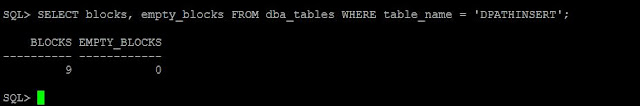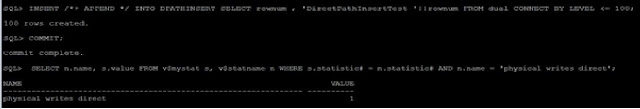 - Create a simple table DPATHINSERT [with only id as number and name as varchar2(100)] and Gather its stats. Before starting validate the HWM allocated for this table and physical direct path write stats.