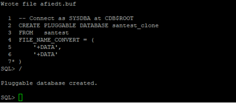 CREATE PLUGGABLE DATABASE santest_clone