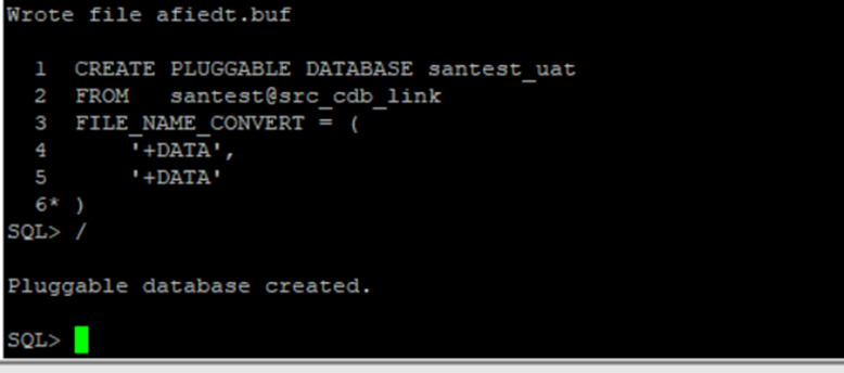 CREATE PLUGGABLE DATABASE santest_uat