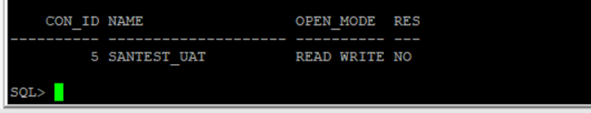 ALTER PLUGGABLE DATABASE santest_uat OPEN;